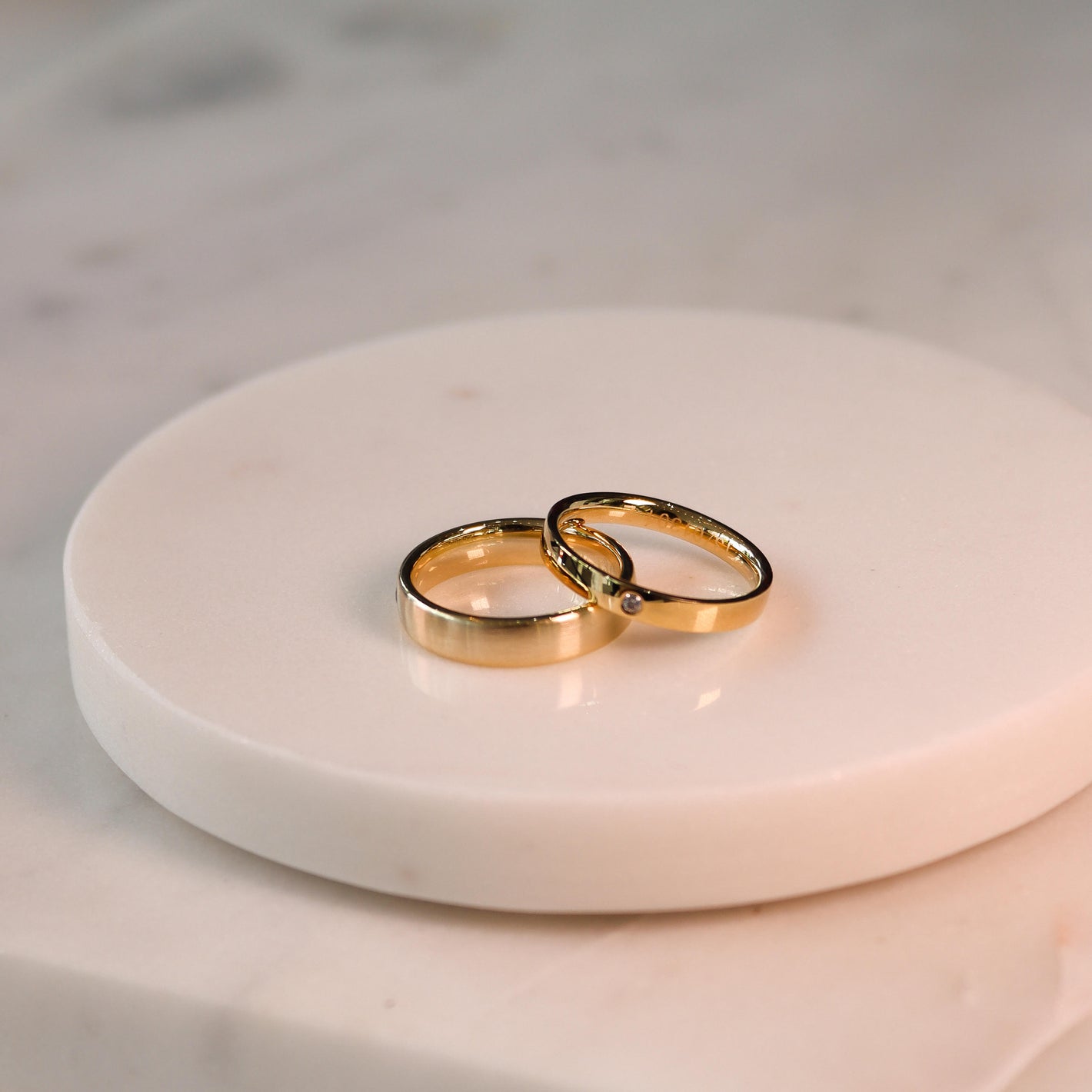 Der Verlobungsring symbolisiert das Versprechen, zu heiraten. Der Ehering steht für die Ehe selbst.